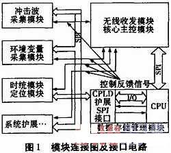 為了滿足系統測試任務,無線傳感器節點采用模塊化設計,各功能模塊通過SPI接口鏈接。由于系統功能要求,使一個模塊與多個模塊鏈接通信,其接口電路SPI工作在不同的主從機模式,使用單一SPI接口主從切換,勢必降低模塊間通信速度與靈活性。依據可編程邏輯器件CPLD有其編程靈活、易擴展性,在模塊內部擴展專用SPI接口,試驗證明SPI接口電路設計,有簡化模塊間連接、提高通信速度、系統擴展性強,以及提高系統整體性能的特點。