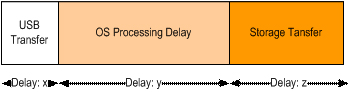 雖然USB速度快了十倍(從480Mbps 到 5Gbps),但是真正的吞吐量將遠(yuǎn)遠(yuǎn)低于理論值,因?yàn)閁SB延時(shí)(X)比操作系統(tǒng)處理延遲(Y)和存儲(chǔ)傳輸延遲(Z)都小得多,其相對(duì)于總延時(shí)可以忽略不計(jì)。Z延時(shí)可以通過選擇更好的存儲(chǔ)設(shè)備來改進(jìn),但是Y延時(shí),則需要通過更有效地系統(tǒng)設(shè)計(jì)來管理。