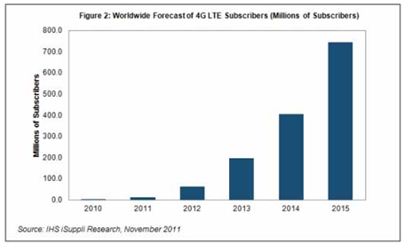 - 2011年底全球4G LTE用戶預計將達到1160萬個