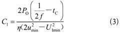 設(shè)交流電壓u的最小值為umin。u經(jīng)過橋式整流和CI濾波,在u=umin情況下的輸入電壓波形如圖2所示。該圖是在Po=POM,f=50Hz、整流橋的導(dǎo)通時間tC=3ms、η=80%的情況下繪出的。由圖可見,在直流高壓的最小值UImin上還疊加一個幅度為UR的一次側(cè)脈動電壓,這是CI在充放 電過程中形成的。欲獲得CI的準(zhǔn)確值,可按下式進(jìn)行計(jì)算: