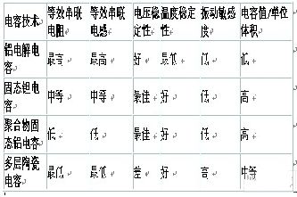 - 多層陶瓷電容、固態鉭電解電容和鋁電解電容的比較