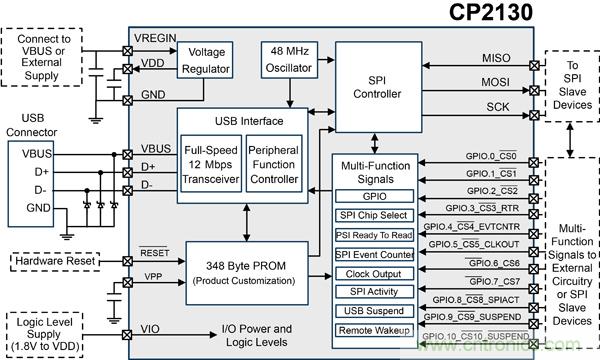 圖1:Silicon Labs推出USB轉SPI橋接芯片CP2130橋接控制器