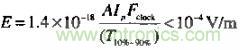要想精確計算一個數字產品的輻射強度等級是件不現實的事情,因為有太多的因素會影響結果。下式表示了一個簡單的約束條件:開放的測量試驗場合,30MHZ以上,滿足FCC和VDE輻射限制的環路面積、峰值電流和上升時間。
