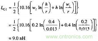 圖9.8顯示了一個典型的16位總線。我們來分步計算路徑G1和G2的電感,以及路徑G1的輻射和路徑G2的輻射。