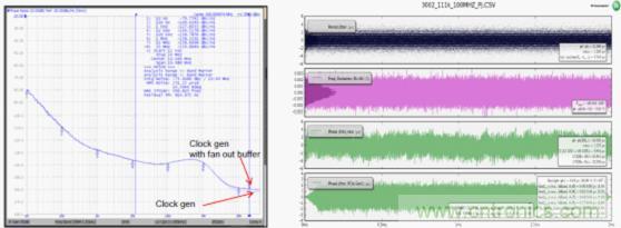 圖3:NB3N3002以100 MHz驅動NB3N106K/108K/111K扇出緩沖器符合PCIe 1,2,3抖動及相位噪聲規范。