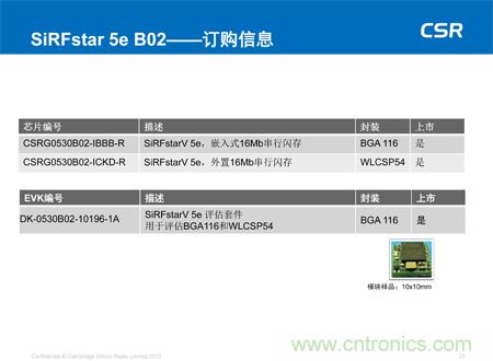 可穿戴設(shè)備應(yīng)用。該低功耗器件現(xiàn)已全面投入生產(chǎn),不僅可大幅度降低功耗且不影響定位精度,還可提供多衛(wèi)星GNSS支持,可滿足所有地區(qū)對(duì)GNSS的需求,包括美國(guó)的GPS、歐洲的伽利略、俄國(guó)的Glonass及中國(guó)的北斗衛(wèi)星系統(tǒng)。此外,SiRFstar 5e B02還搭載了CSR全新的SmartGNSS技術(shù),可提供兩種模式最大程度地降低功耗,并能夠根據(jù)信號(hào)條件及衛(wèi)星可用性自主管理GNSS系統(tǒng)的應(yīng)用。