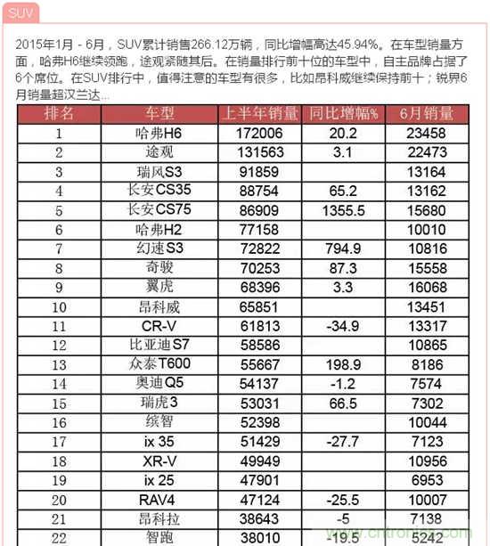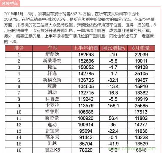 據(jù)中國(guó)汽車(chē)工業(yè)協(xié)會(huì)發(fā)布的數(shù)據(jù),2015年6月,汽車(chē)產(chǎn)銷(xiāo)量環(huán)比下降,同比繼5月后再次雙雙下降;上半年,汽車(chē)產(chǎn)銷(xiāo)增速比上年同期明顯回落。說(shuō)到汽車(chē),小編想到了由我愛(ài)方案網(wǎng)承辦的“創(chuàng)業(yè)之星”2015全球創(chuàng)客大賽成都賽場(chǎng)中的一個(gè)參賽項(xiàng)目:智能車(chē)載太陽(yáng)能轉(zhuǎn)化防護(hù)裝置,它改變?cè)扔扇斯ふ周?chē)費(fèi)時(shí)費(fèi)力方法,完全達(dá)到遙控自動(dòng)罩車(chē),屬于汽車(chē)產(chǎn)品領(lǐng)域的一項(xiàng)新技術(shù),歡迎大家到淘方案上了解詳情!下面跟著小編來(lái)看看中國(guó)汽車(chē)在2015年1月-6月的銷(xiāo)量數(shù)據(jù)!歡迎參與互動(dòng)分享!