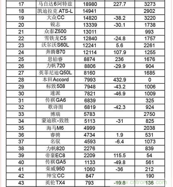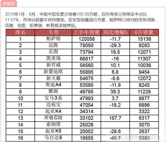 根據(jù)中國(guó)汽車(chē)工業(yè)協(xié)會(huì)的數(shù)據(jù),2015年上半年380余款車(chē)型的銷(xiāo)量按照級(jí)別分類(lèi)如下:
