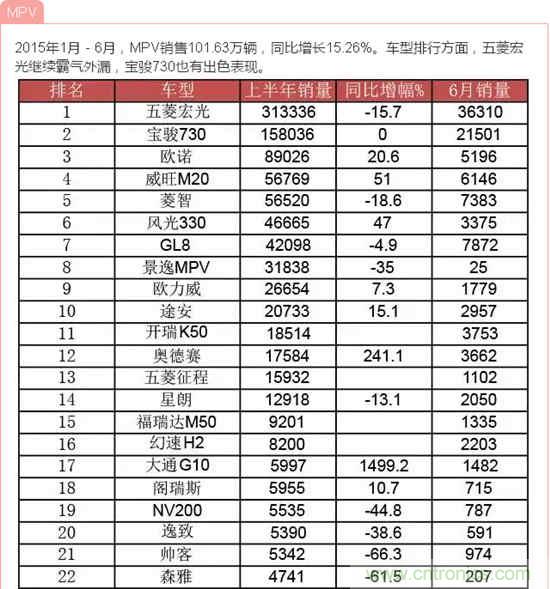 2015年1-6月中國(guó)汽車(chē)銷(xiāo)量數(shù)據(jù)分析