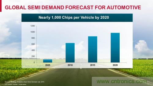 圖 1:汽車半導(dǎo)體正蓬勃發(fā)展,據(jù)分析人士預(yù)測,到 20201 年每輛汽車使用的芯片數(shù)量將接近1,000 枚,而 2005 年還不足 100 枚。