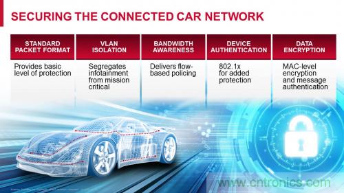 數(shù)10年來,以太網(wǎng)作為全球最受歡迎也是最可靠的網(wǎng)絡(luò)技術(shù),一直長期成功并安全地部署在動(dòng)態(tài)且變化萬千的企業(yè)環(huán)境中。現(xiàn)在,以太網(wǎng)固有的安全特性加上其它大量技術(shù)標(biāo)準(zhǔn)的問世,能夠進(jìn)一步提升其安全性,這激發(fā)了汽車制造商對以太網(wǎng)的濃厚興趣。