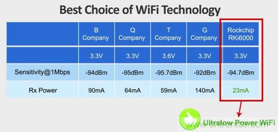 低功耗WiFi已成為IoT物聯網核心因素,瑞芯微Rockchip去年宣布推出全球最低功耗WiFi RKi6000,該技術使WiFi功耗與BT4.0 LE(Low Energy)藍牙低功耗相當。可覆蓋智能家居、主流家電、家庭控制中心,甚至醫療、交通、軍事等領域。該革命性低功耗WiFi方案引發了業界極大關注。