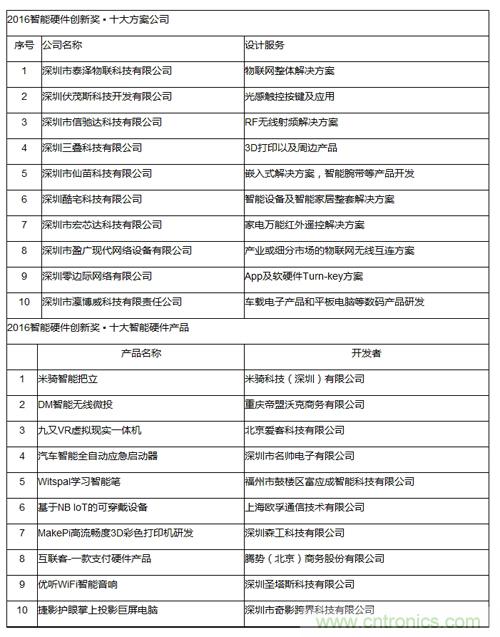 2016智能硬件創新獎展現出整個生態環節的創新。“智能硬件產品的創新,不再是一家公司的事情,而需要整個產業鏈的支持。智能硬件開發者創客在定義產品時需要專業的技術指導,在產品開發時也需要與專業的方案公司合作應對設計挑戰,在產品化和量產過程中還會需要專業的供應鏈和元器件采購方面的服務支持。強強聯手,才能夠打造創新的智能硬件產品,讓智能產品與眾不同。”劉杰博士指出。因此,本次評選也針對行業用戶的需求,特別設置了各個細分的獎項,如十大智能硬件產品和十大方案公司,樹立行業標桿,讓智能硬件創新創業者快速找到適合自己的優質生態資源。