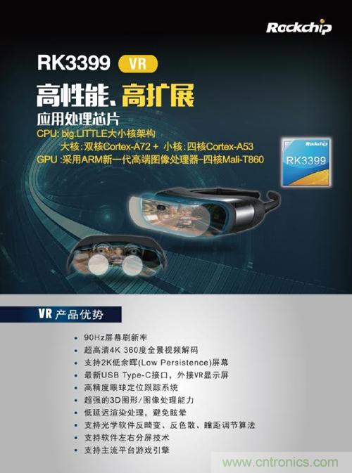 據了解,目前瑞芯微Rockchip旗下主流芯片RK3288,應用于VR產品,已經具備其曝光的所有技術優勢。已在VR產業鏈頗具建樹,在2016年的CES展及本次香港展,多家品牌終端廠商采用了該入門級VR方案并進行了展示。而最新發布的RK3399處理器,更定于中高端VR產品線,在硬件配置上提升巨大。