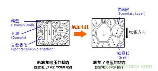 圖2:向鐵電體陶瓷施加電壓時(shí)的狀態(tài)