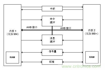 中斷法:這種方法讓一個內(nèi)核向另一個內(nèi)核發(fā)送一個中斷來指示一個應(yīng)用程序事件。通常中斷程序非常緊湊,不會占用太多的代碼存儲空間。與任何中斷機制一樣,每個中斷都有自己的 ISR(中斷服務(wù)程序),通過它可以讓相應(yīng)的內(nèi)核執(zhí)行特定的任務(wù)。在實際的數(shù)據(jù)傳遞中,有一個可以被多個內(nèi)核訪問的共享內(nèi)存。除了共享數(shù)據(jù)之外,它還提供了請求和確認(rèn)消息的機制。