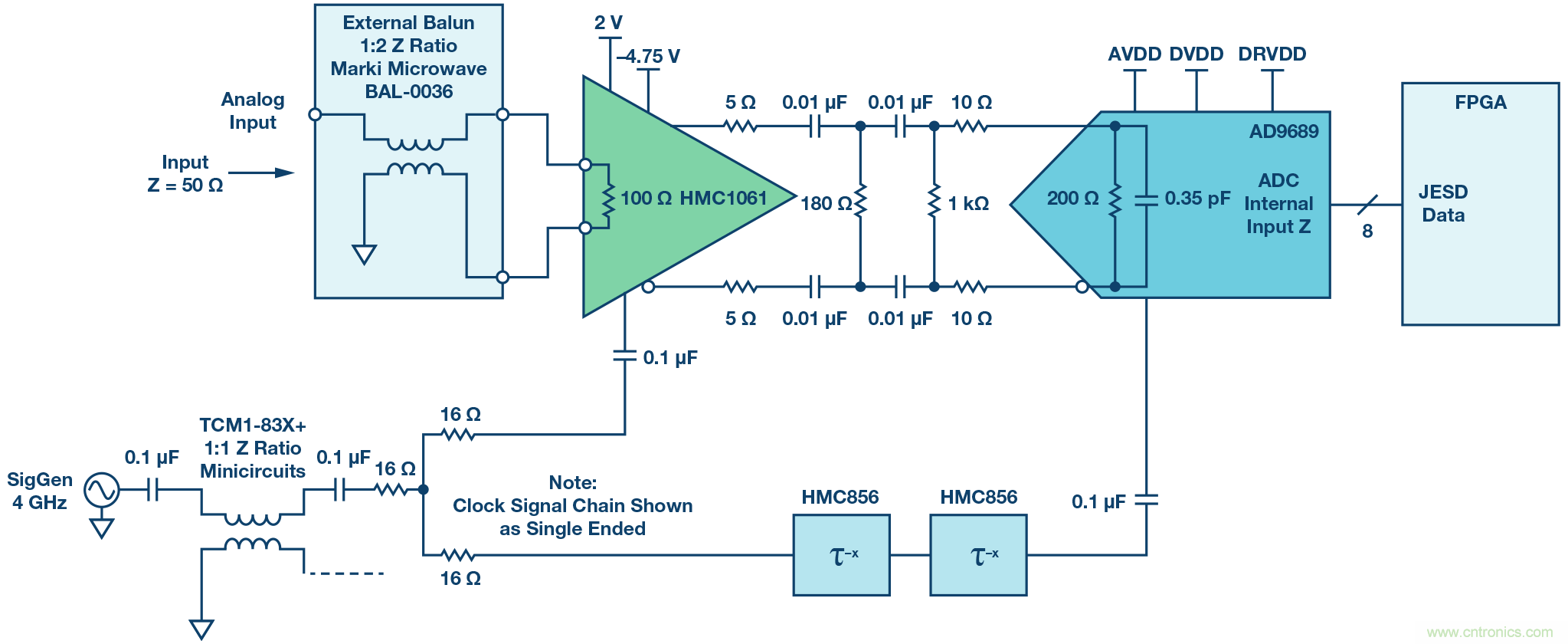 圖5. THA和ADC前端網(wǎng)絡及信號鏈。