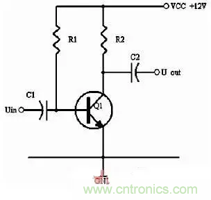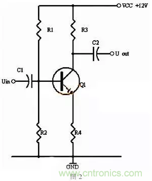 同理,當輸入信號減小時,則Ib減小,Ic電流減小,則電阻R2的電壓U2=Ic×R2會隨之減小,Uce=VCC-U2,會變大。在輸入信減小時,Uce最大變化是從1/2的VCC變化到VCC。這樣,在輸入信號一定范圍內發生正負變化時,Uce以1/2VCC為準的話就有一個對稱的正負變化范圍,所以一般圖1靜態工作點的設置為Uce接近于電源電壓的一半。