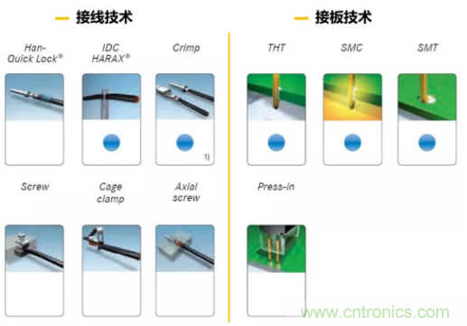 壓接連接具有結(jié)構(gòu)緊湊、連接牢靠、可靠抗震、能夠通過專用工具進(jìn)行現(xiàn)場操作等優(yōu)點(diǎn)。跟一般螺釘連接相比,壓接提供最大可能的連接密度,即單位面積內(nèi)可提供的連接通道最多。因?yàn)槠溥B接原理是冷壓,因此連接氣密性好,連接質(zhì)量非常高。在已知的接線技術(shù)里,壓接的質(zhì)量最高。