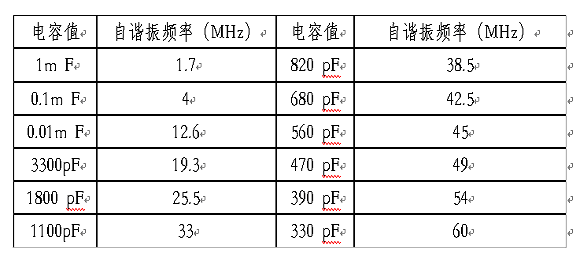 根據LC電路串聯諧振的原理,諧振點不僅與電感有關,還與電容值有關,電容越大,諧振點越低。許多人認為電容器的容值越大,濾波效果越好,這是一種誤解。電容越大對低頻干擾的旁路效果雖然好,但是由于電容在較低的頻率發生了諧振,阻抗開始隨頻率的升高而增加,因此對高頻噪聲的旁路效果變差。表1是不同容量瓷片電容器的自諧振頻率,電容的引線長度是1.6mm(你使用的電容的引線有這么短嗎?)。