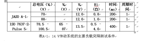表1是用于14 V傳動系統的美國的ISO-7637-2 Pulse 5和日本的JASO A-1測試的仿真。兩項測試的電壓波形如圖A-4a所示。