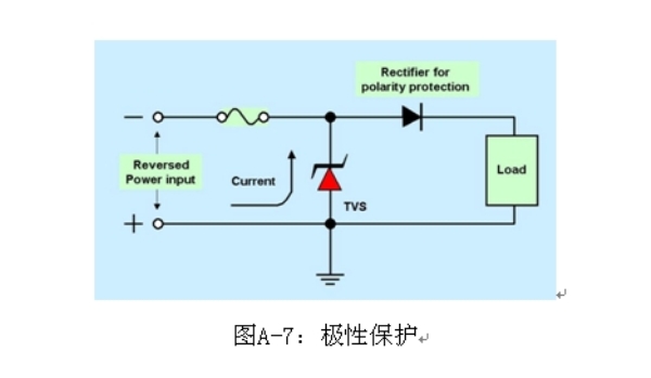 大電流應用極性保護的一種解決方案是使用高正向電流能力的整流器,或者是在電力線中使用沒有極性保護二極管的負載突降TVS,如圖C-10所示。