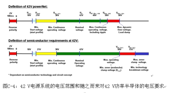 在長期無視和仍在爭論汽車采用42 V左右的系統的運行安全和穩定性的時候,最近一些中型混合動力汽車使用了42 V電源總線和發電機。42 V電源系統的基本概念是實現比12 V電源系統更高的功率效率和減輕汽車中電力線束的重量。這種新型42 V電源系統對半導體元件的影響在于比12 V系統需要高得多的絕緣強度。