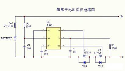 以上詳細闡述了單節鋰離子電池保護電路的工作原理,上面電路中所用的控制IC為日本理光公司的R5421系列,在實際的電池保護電路中,還有許多其它類型的控制IC,如日本精工的S-8241系列、日本MITSUMI的MM3061系列、富晶的FS312和FS313系列、類比科技的AAT8632系列等等,其工作原理大同小異,只是在具體參數上有所差別,有些控制IC為了節省外圍電路,將濾波電容和延時電容做到了芯片內部,其外圍電路可以很少,如日本精工的S-8241系列。