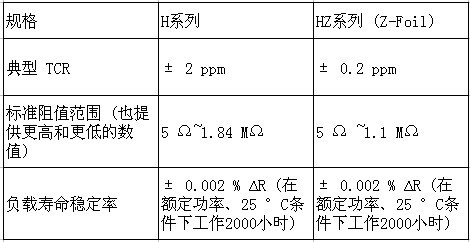 H/HZ系列:Vishay新一代超高精度Bulk Metal?箔電阻