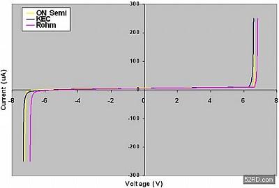 當(dāng)對(duì)以上器件的DC性能進(jìn)行比較的時(shí)候,結(jié)果看起來似乎是相同的(參見圖2所示曲線)。此外,它們都聲稱符合IEC61000-4-2第4級(jí)標(biāo)準(zhǔn),這就意味著它們將都經(jīng)受住高達(dá)8kV接觸電壓的ESD沖擊。