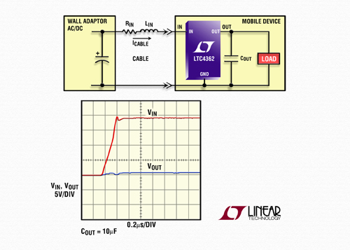 凌力爾特公司 (Linear Technology Corporation) 推出 2.5V 至 5.5V 過壓和過流保護器 LTC4362,該器件為保護低壓、便攜式電子產品免受電壓瞬態和電流浪涌的損害而設計。電源適配器失效或故障,或者將一個 AC 適配器帶電插入設備的電源輸入時,可能會發生過壓。無意間將錯誤的電源適配器插入設備可能會因過壓或負電源電壓而引起損壞。LTC4362 運用準確度為 2% 的 5.8V 過壓門限檢測過壓事件,并在 1us (最大值) 時間內快速響應,以隔離下游組件和輸入。高達 28V 的過壓保護由一個內部雪崩額定的低 RDS(ON) MOSFET 實現,而且在大多數應用中無需瞬態電壓抑制器 (TVS) 或其它外部組件,就可承受電感電纜瞬態。此外,LTC4362 監視一個內部電流檢測電阻器兩端的壓降,以提供準確度為 20% 的 1.5A 過流門限。LTC4362 目標是具有多個電源選項的便攜式電子產品,如通過交流和汽車電池適配器以及USB端口充電的蜂窩電話、MP3/MP4 播放器、數碼相機等。
