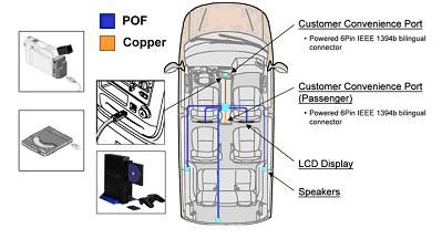 這套視頻-音頻網絡包括一個用戶便利端口(CCP),可供乘客將自己的CD機、游戲機和其它應用1394總線的設備和外設連接到網絡中,所配電纜通用于家中和車上。