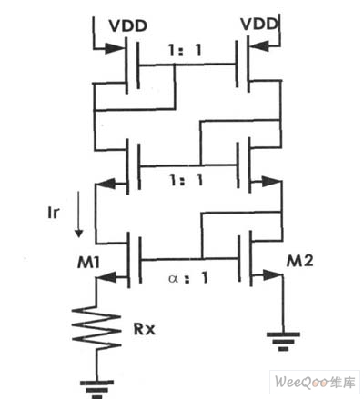 那么利用PMOS的飽和區(qū)電流公式可得M1與M2的具體尺寸。為使此時(shí)電壓比較器A1性能更佳,設(shè)定VB為VDD的一半,可求出R2阻值,再根據(jù)公式(2)得到的電阻比例,便可得到R1阻值。