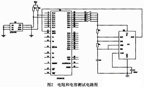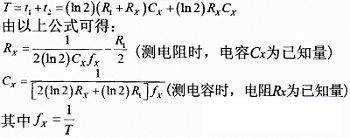 單片機測得振蕩輸出的頻率,計算后即可得到電阻和電容的值。不同量程對應不同的電路參數,利用開關可方便地選擇對應不同量程的對應電路。