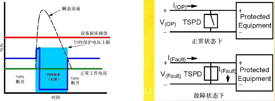 消弧保護器件:當一個激勵觸發時,通常是產生一個短路通道來實現保護目的。如晶閘管浪涌保護器件TSPD