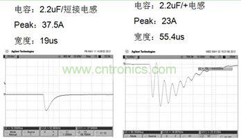 1、電容增大,由于ESR和容量的共同影響,導(dǎo)致開(kāi)機(jī)脈沖Peak增大,脈沖寬度也增加