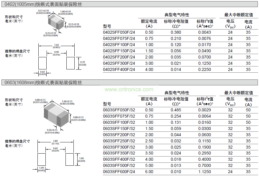 快斷式表面貼裝保險絲可為高達63VDC直流電源提供電流保護