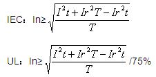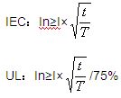 如果保險絲通以一定的電流(Ix)可以永久工作,那么此時保險絲的聚熱與散熱一定處于平衡狀態(tài),此時保險絲的散熱功率為Ix2T。如果尖峰電流產生的能量≤Ix2T,可以認為尖峰電流產生的能量不可能使保險絲的溫升大于Ix時的溫升。對于滿足不同的安規(guī)體系,Ix的數值有所區(qū)別,IEC體系下可以認為等于In;UL體系下可以認為等于75%In。