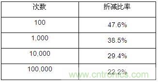 >> 預測100億次(2萬小時+)和1000億次(20萬小時+)的脈沖折減比率期望值分別為:2.6%和2%。但是基于現有數據預測是有誤差的,從統計學的角度,有95%的把握分別落在(1.3%, 3.8%)(1%, 3.1%)范圍內。在實際計算中,我們都取下限作為計算標準。