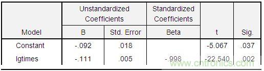 lg(ratio) = -0.092 – 0.111*lg(times),通過t檢驗,此方程關系非常顯著,如下表。