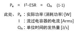交流電流通過此類電容器時(shí),會因電容器的電阻成分(ESR),產(chǎn)生式.1-1中所示的功率消耗Pe,則電容器發(fā)熱。