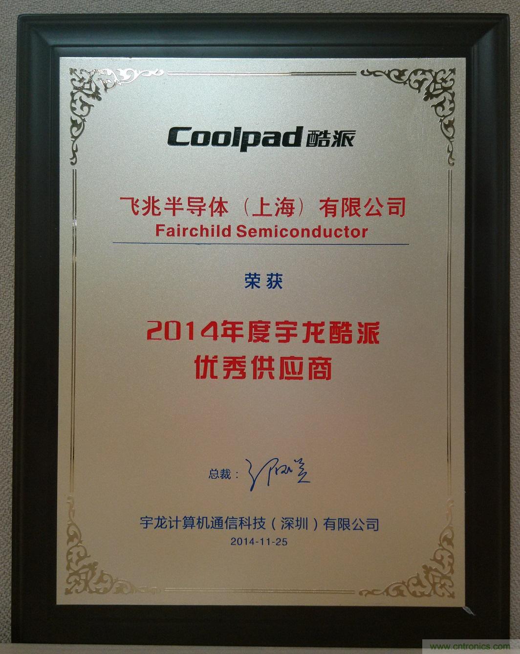 最佳供應(yīng)商獎旨在表彰Fairchild為宇龍酷派品牌提供一流產(chǎn)品、杰出服務(wù)和強(qiáng)大的技術(shù)支持。宇龍酷派品牌是中國領(lǐng)先的智能手機(jī)之一。Fairchild的準(zhǔn)時(shí)交貨為 2014 上半年宇龍大舉進(jìn)軍 4G LTE 智能手機(jī)市場提供了大力支持。