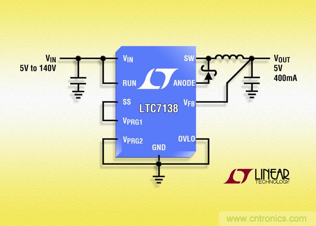 【導讀】近日,凌力爾特公司宣布推出 擁有140V 輸入的高效率降壓型轉換器 LTC7138,該器件提供高達 400mA 連續輸出電流,靜態電流僅為 12µA 的 140V、400mA 。LTC7138 在 4V 至 140V 輸入電壓范圍內工作,因此非十分適合電信、汽車、航空電子和工業等多種應用。