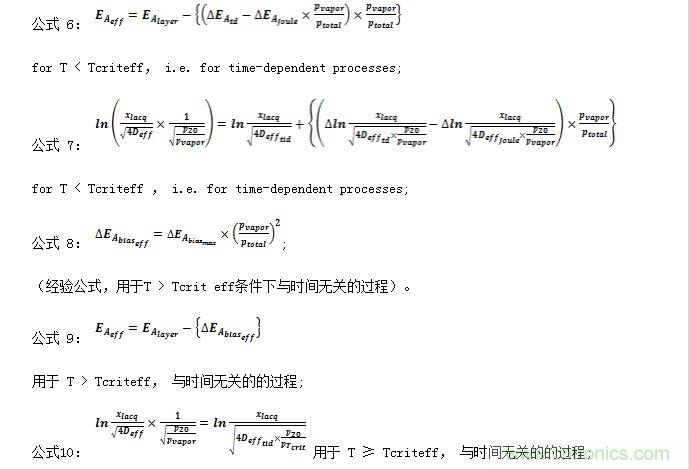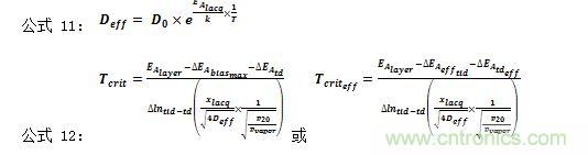 公式11和公式12描述了估算擴散Deff 的系數,以及臨界溫度相關涂漆或塑模系統的Tcrit 或 Tcrit eff。