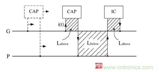 在這里引入兩個(gè)概念:Labove 、Lbelow (電容和IC下面的電流回路大小不一定一樣,但在這里分析的時(shí)候,假定大小等同)