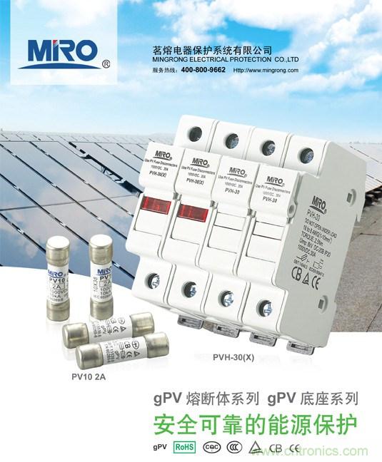 浙江茗熔電器生產的PV系列熔斷器是專門為保護太陽能光伏(PV)系統而設計的,適用于光伏組件串和光伏方陣電能系統中光伏匯流箱的應用;熔斷器能夠分斷故障PV陣列(反向電流、多排陣列故障)產生的較低過載電流,以保護和隔離光伏組列。該系列產品額定工作電壓DC 1000V,額定工作電流2A~30A的光伏電能系統中,具有全范圍分斷能力的熔斷體,額定分斷能力DC1000V/10kA。PV10光伏熔斷體由純銀帶/絲制成的熔體封裝于由高強度有機材質制成的熔管內;熔管中充滿經化學處理過的高純度石英砂作為滅弧介質;熔體兩端通過焊接與接觸帽(內蓋)牢固電連接,內置的絕緣隔離墊片,能滿足光伏熔斷器系統在極端使用條件下的應用,確保性能更穩定,表現更優異、可靠。 產品符合IEC60269-6和GB/T 13539.6標準。熔斷體外形尺寸和基本性能與國內外同類型產品接近,故能作為國外引進設備上同類型熔斷體的替換。