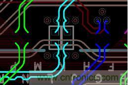 AC耦合電容焊盤相比鏈路的走線會比較寬,這樣對于高速信號傳輸來說就是一處阻抗不連續點(如圖1),為保證阻抗的一致性,AC耦合電容的下方需要做多層的掏空,但是由于PCB設計的第3層或者倒數第3層通常是POWER層,挖空后可能會導致BGA IO口模擬電源的壓降問題;目前很多電源模塊都具有Remote Sense功能,可以補償PCB壓降問題,所以AC耦合電容焊盤下方做多層掏空也是可以的。