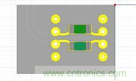 根據上節3種Case情況下的仿真結果和PCB設計的實際情況,AC耦合電容只掏空GND02層,掏空尺寸為X方向掏34mil,Y方向掏66mil。因為ViaExpert可以直接導入Brd文件,所以在PCB設計完成后在ViaExpert里面直接對Brd進行解析,提取出板上的AC耦合電容和出線。PCB實際AC耦合電容的設計以及導入到ViaExpert中提取完成的3D效果圖分別如圖12和圖13所示。