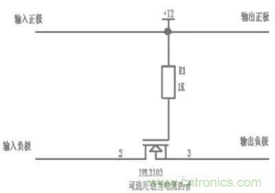 圖3利用了MOS管的開關特性,控制電路的導通和斷開來設計防反接保護電路,由于功率MOS管的內阻很小,現在 MOSFET Rds(on)已經能夠做到毫歐級,解決了現有采用二極管電源防反接方案存在的壓降和功耗過大的問題。