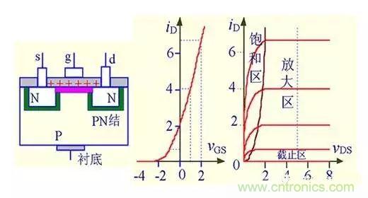(1) VGS=0時,不管VDS極性如何,其中總有一個PN結反偏,所以不存在導電溝道。